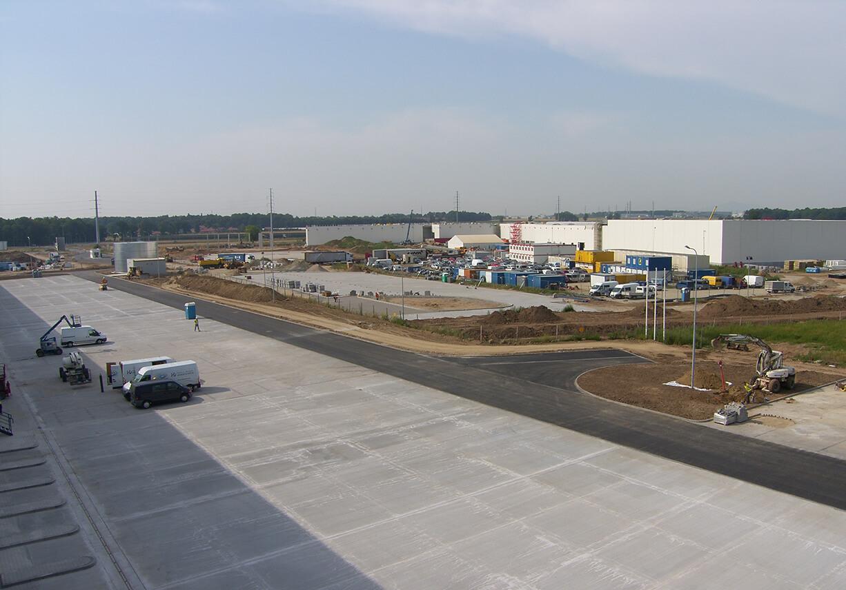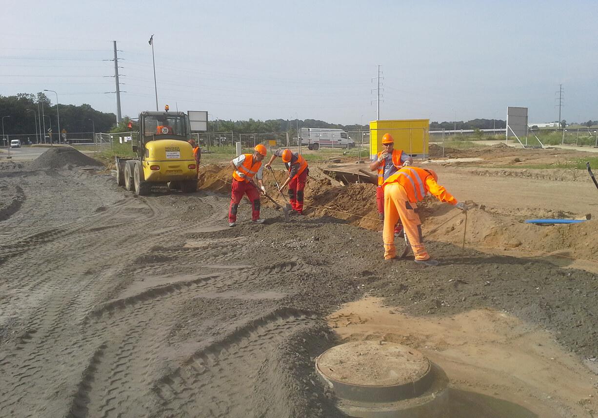 Budowa hali DC5. 2014 ZakresRoboty ziemne: ~ 1000m3Drogi o nawierzchni bitumicznej: ~ 9000m2Drogi o nawierzchni z kostki betonowej: ~ 6000m2Adres inwestycjiPrologis Park V, Nowa Wieś WrocławskaInwestorPROLOGIS PolandZleceniodawcaKAJIMA Poland PrevPoprzedniBudowa dróg alternatywnych od ronda do DC3. 2013/2014 NastępnyBudowa dróg wewnętrznych na terenie centrum logistycznego. 2014/2015Next