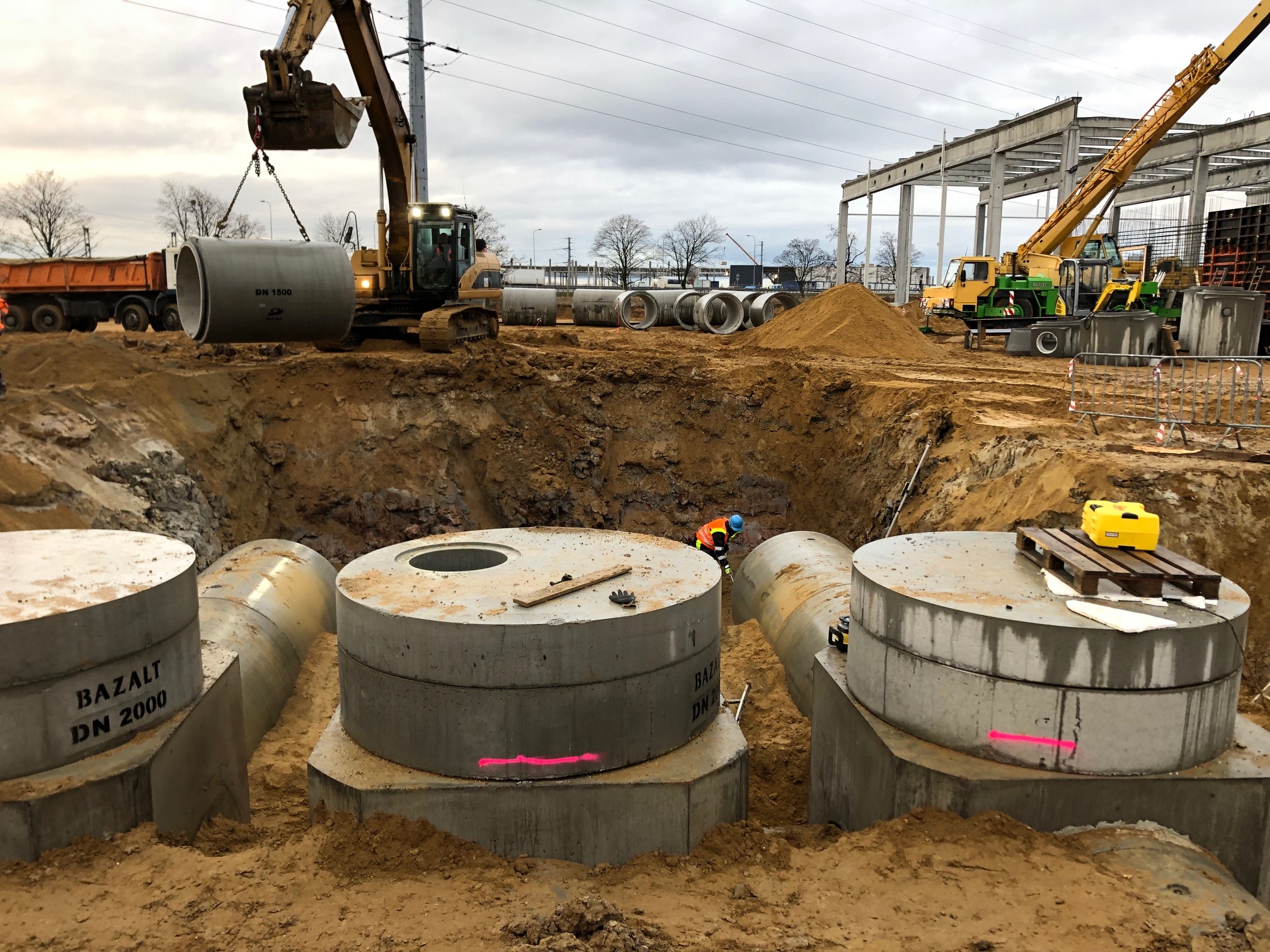 Podziemne zbiorniki retencyjne na wody opadowe: ~ 1 000 m3
