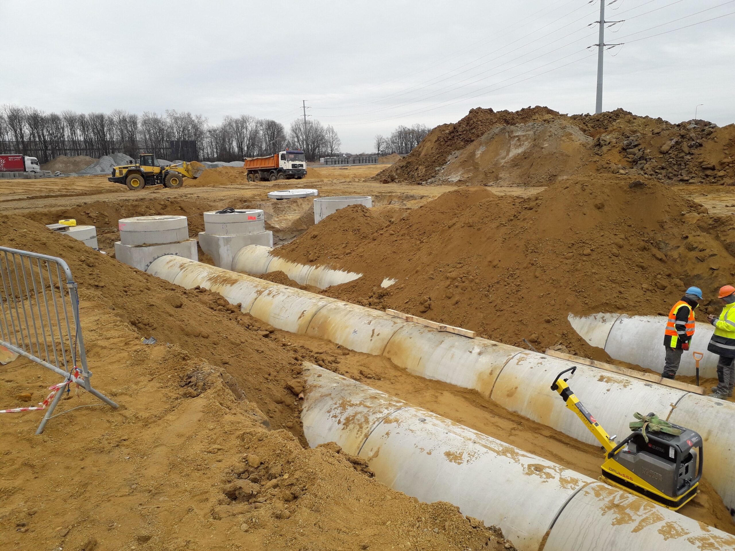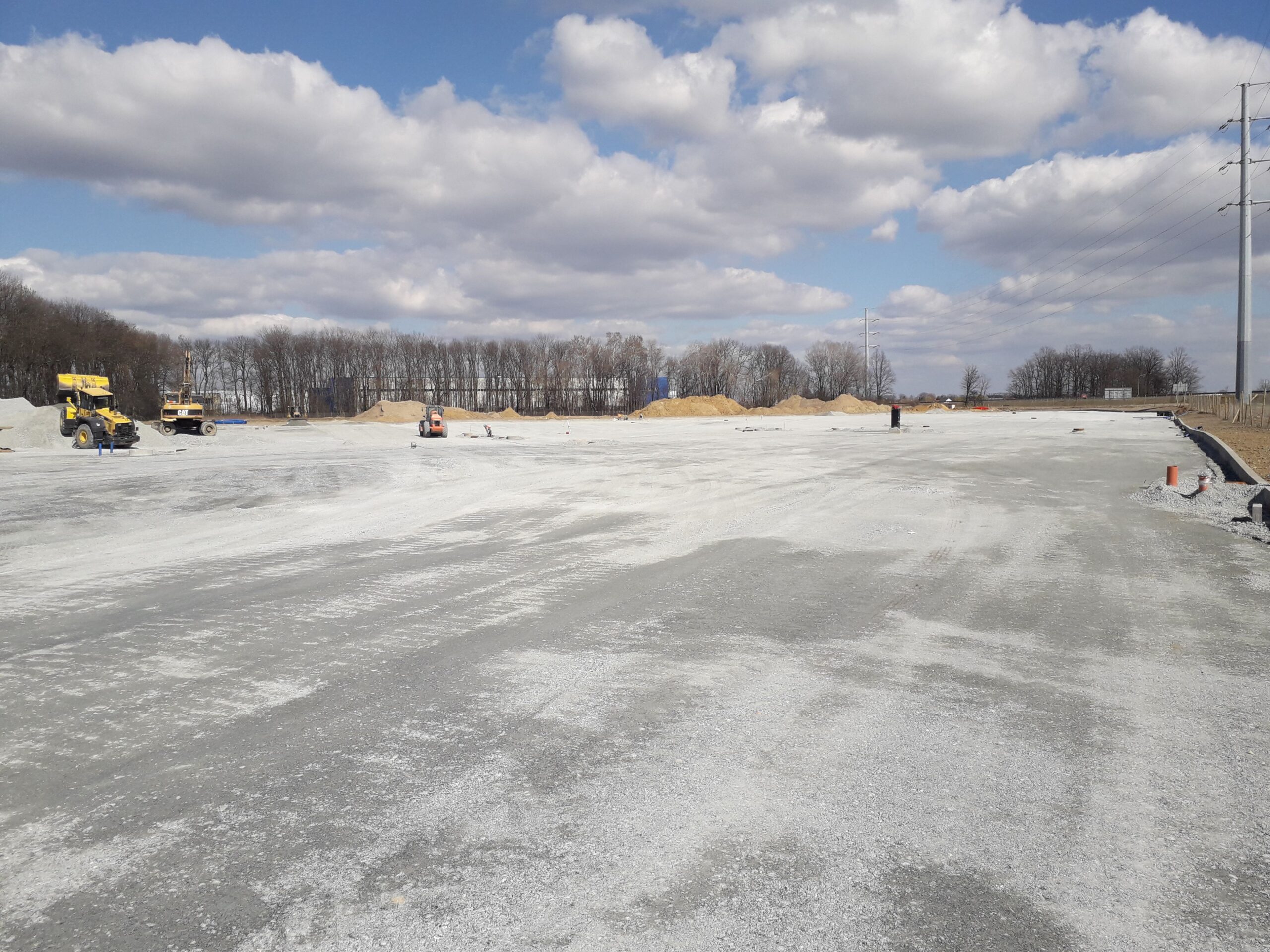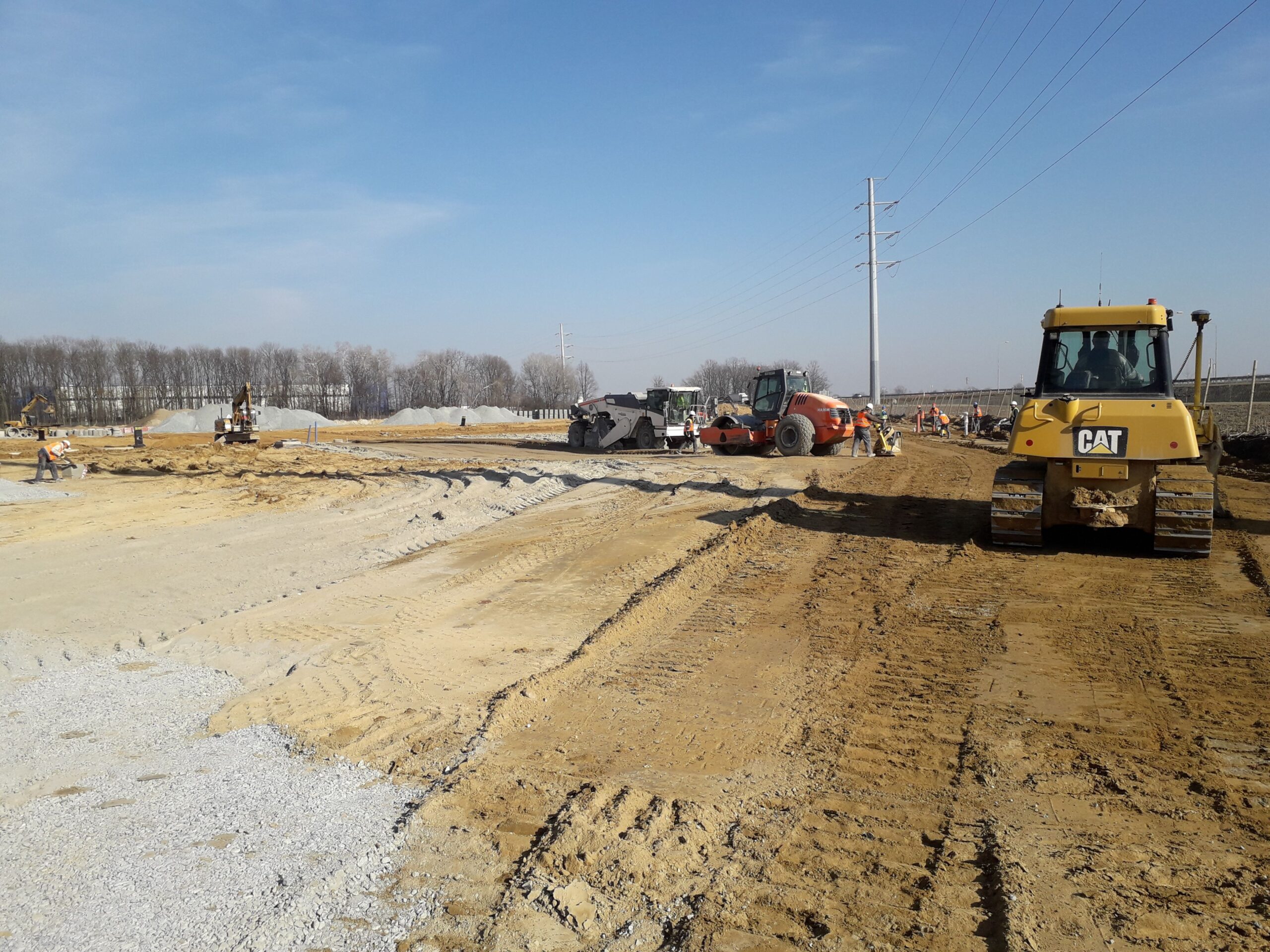 Roboty ziemne: ~ 70 000 m3 Drogi o nawierzchni betonowej C30/37: ~ 55 000 m2 Podbudowy pod posadzki: ~ 6 000 m2 Nawierzchnie z kostki betonowej: ~ 1 000 m2 Kanalizacje deszczowe i sanitarne: ~ 3 500 mb Podziemne zbiorniki retencyjne na wody opadowe: ~ 1 000 m3 Woda hydrantowa i bytowa: ~ 1 000 mb Podziemne zbiorniki na wodę do zaopatrzenia P.POŻ.: ~ 400 m3 Podziemne pompownie P.POŻ. |