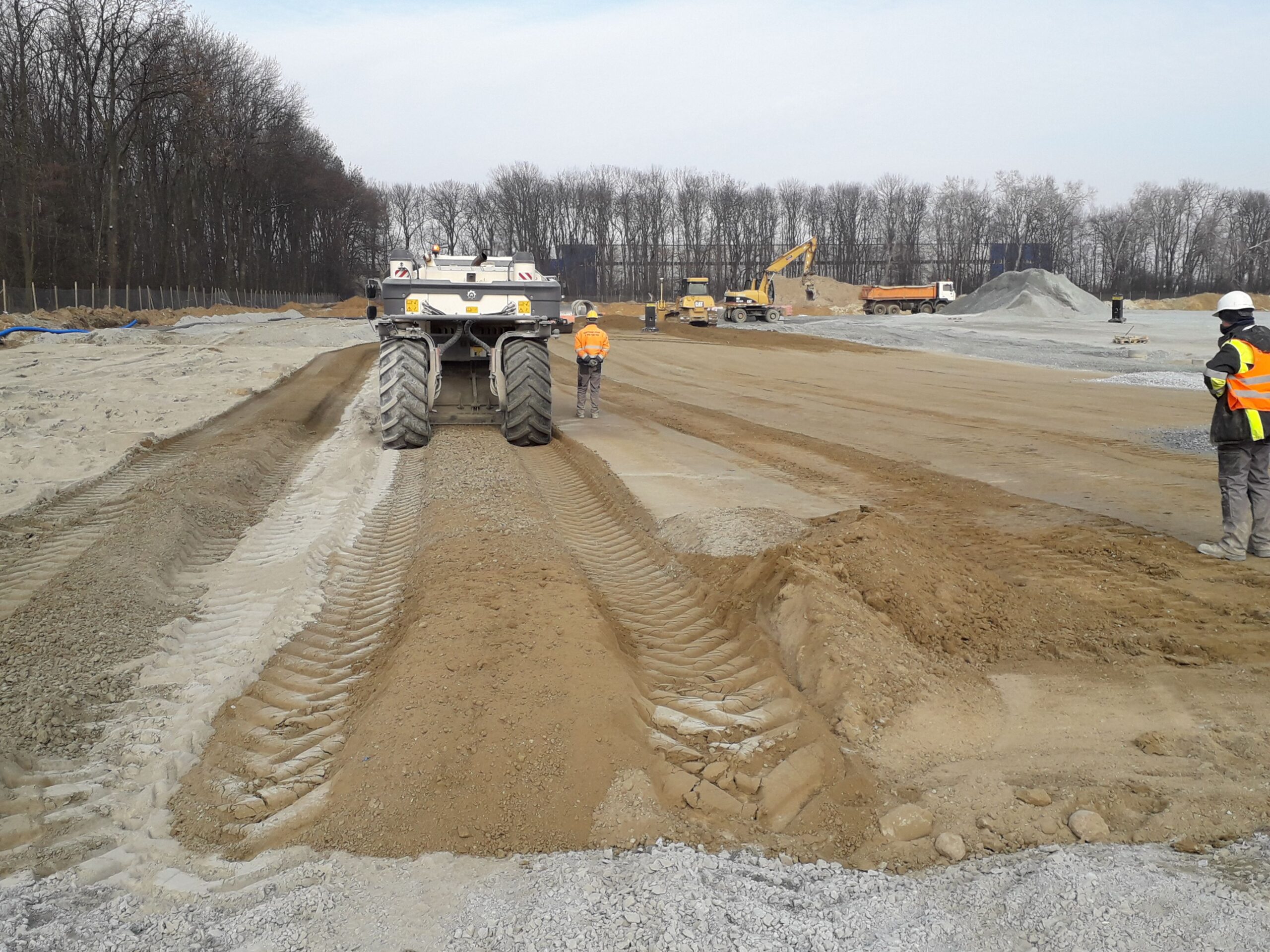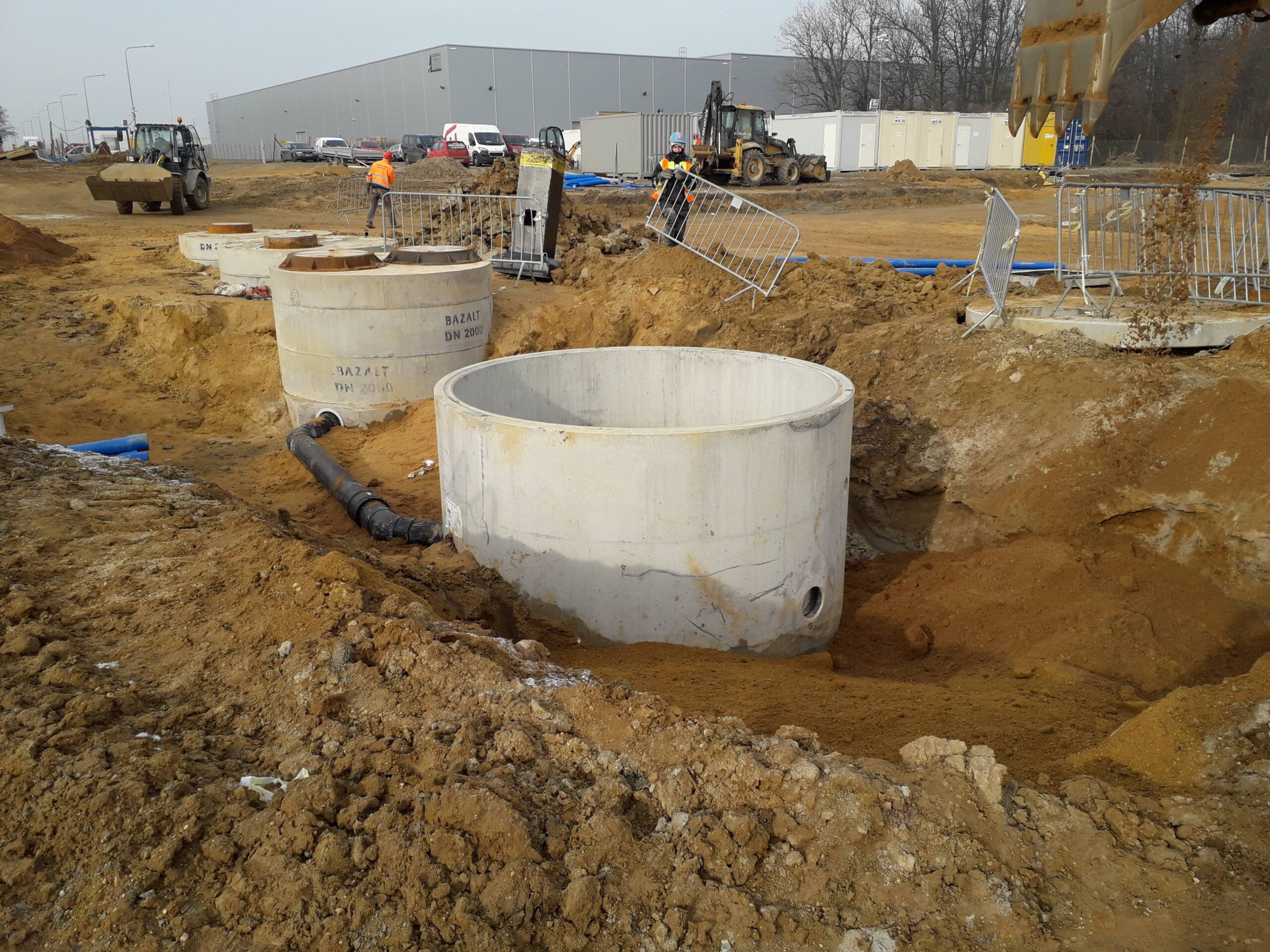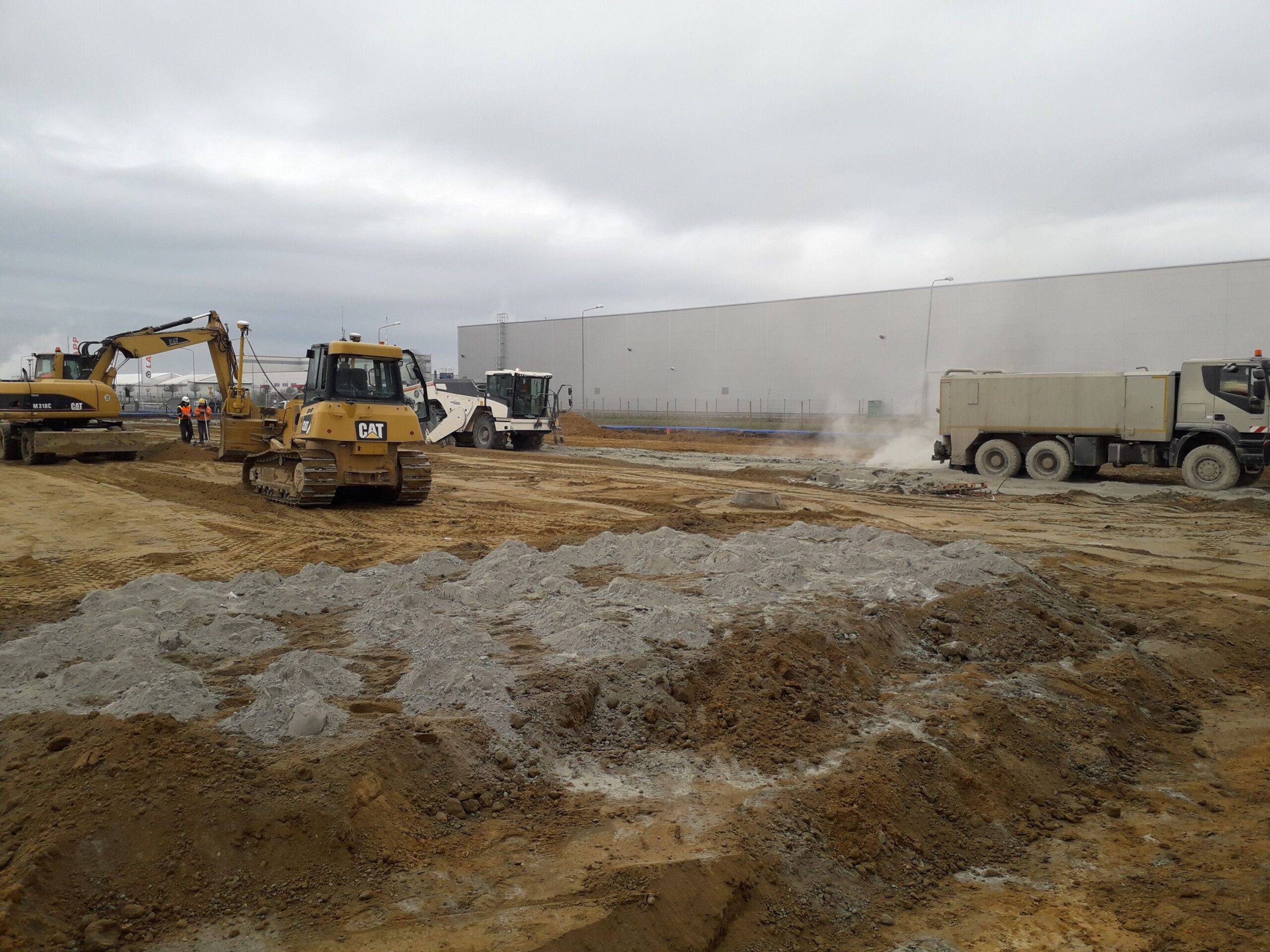Roboty ziemne: ~ 70 000 m3 Drogi o nawierzchni betonowej C30/37: ~ 55 000 m2 Podbudowy pod posadzki: ~ 6 000 m2 Nawierzchnie z kostki betonowej: ~ 1 000 m2 Kanalizacje deszczowe i sanitarne: ~ 3 500 mb Podziemne zbiorniki retencyjne na wody opadowe: ~ 1 000 m3 Woda hydrantowa i bytowa: ~ 1 000 mb Podziemne zbiorniki na wodę do zaopatrzenia P.POŻ.: ~ 400 m3 Podziemne pompownie P.POŻ. |
