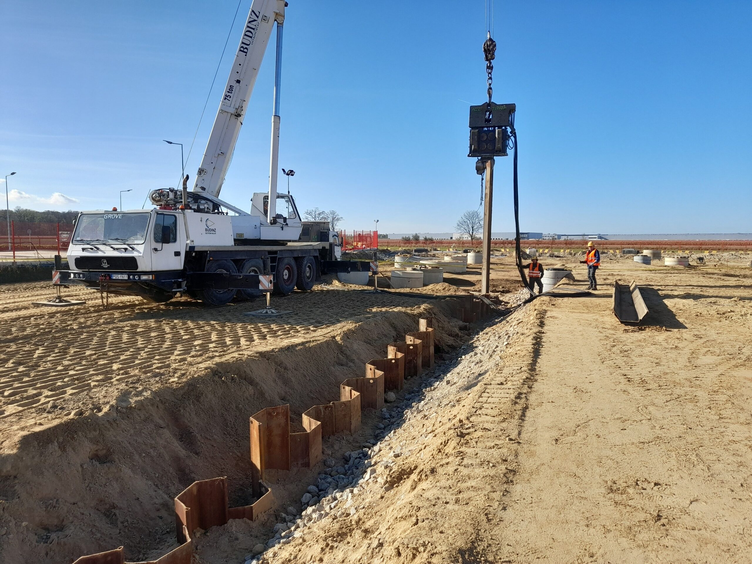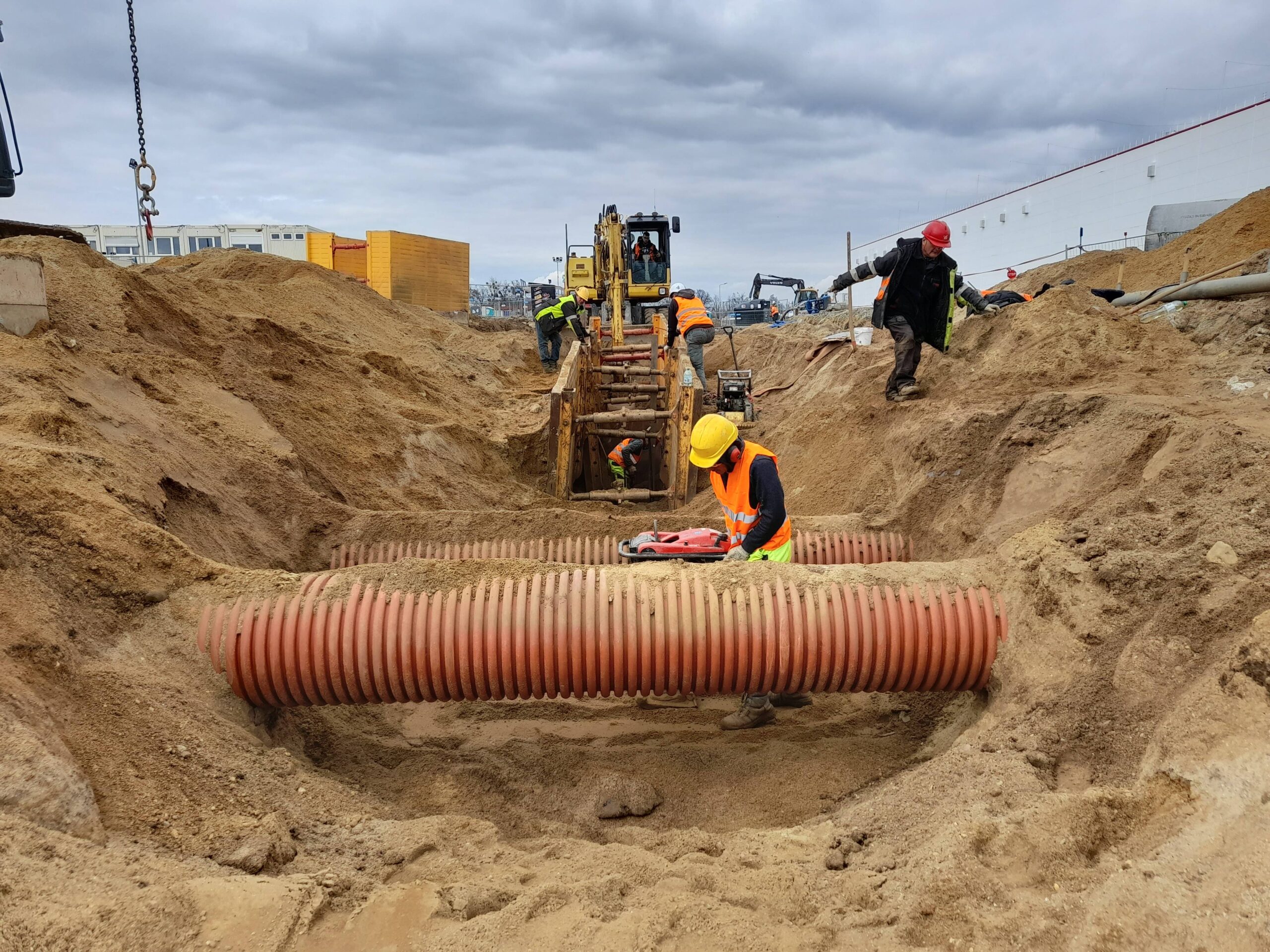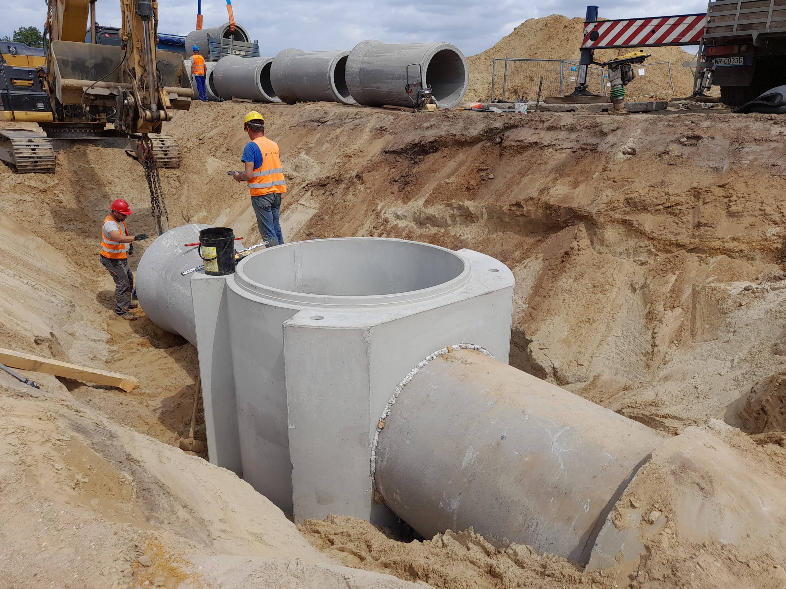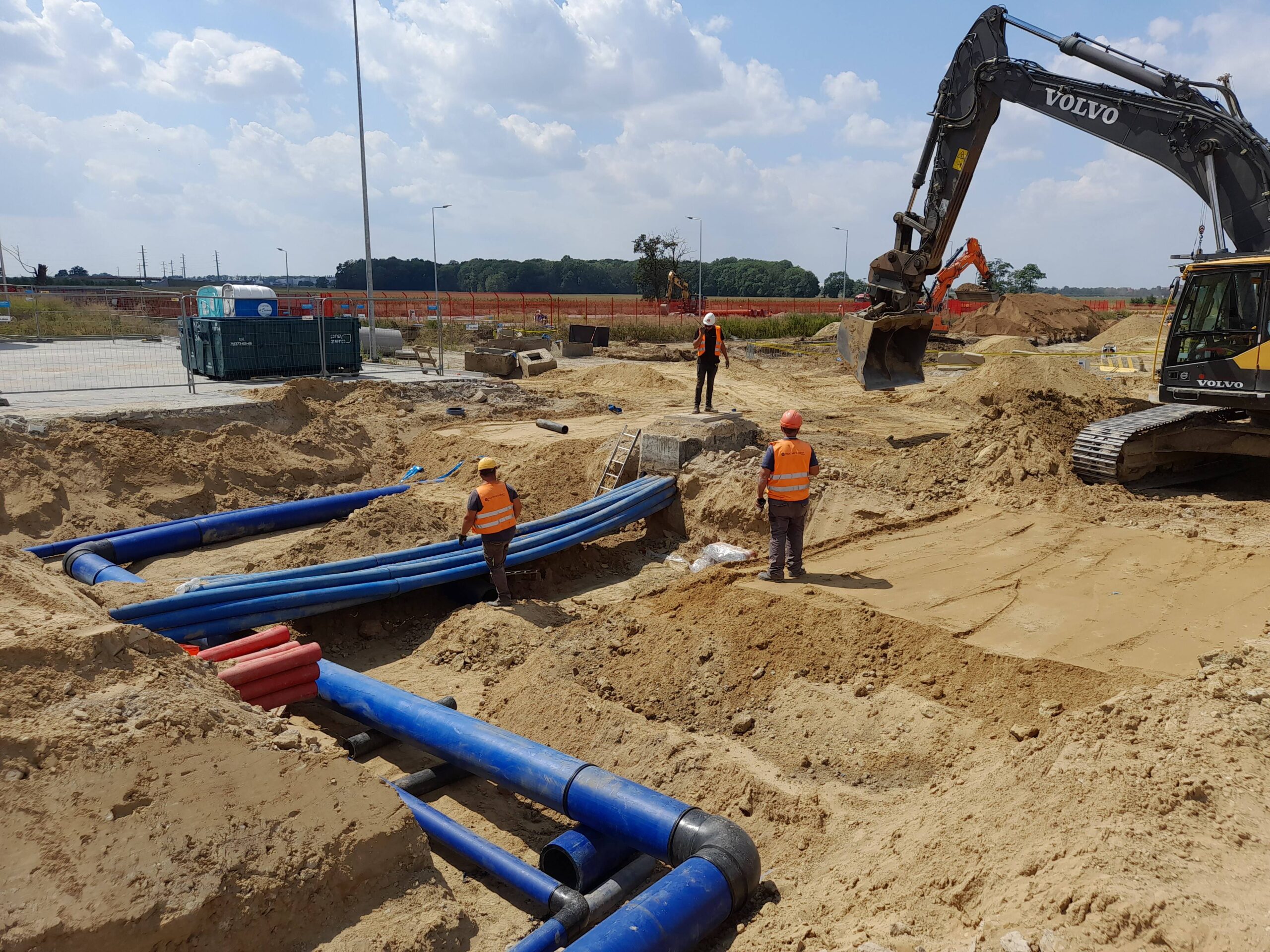 Projekty branżowe instalacyjne. Roboty ziemne: ~ 55 000m3 Kanalizacje deszczowe i sanitarne: ~ 7 500mb Podziemne zbiorniki retencyjne na wody opadowe: ~ 2 300m3 Instalacje wodociągowe: ~ 300mb Instalacje pożarowe: ~ 1 200mb Instalacje gazowe: ~ 600mb Sieci technologiczne: ~ 500mb Ścianki szczelne: ~ 5 000m2 Przewierty: ~ 800mb Przyłącza wodociągowe i sanitarne. Odwodnienie terenu. |