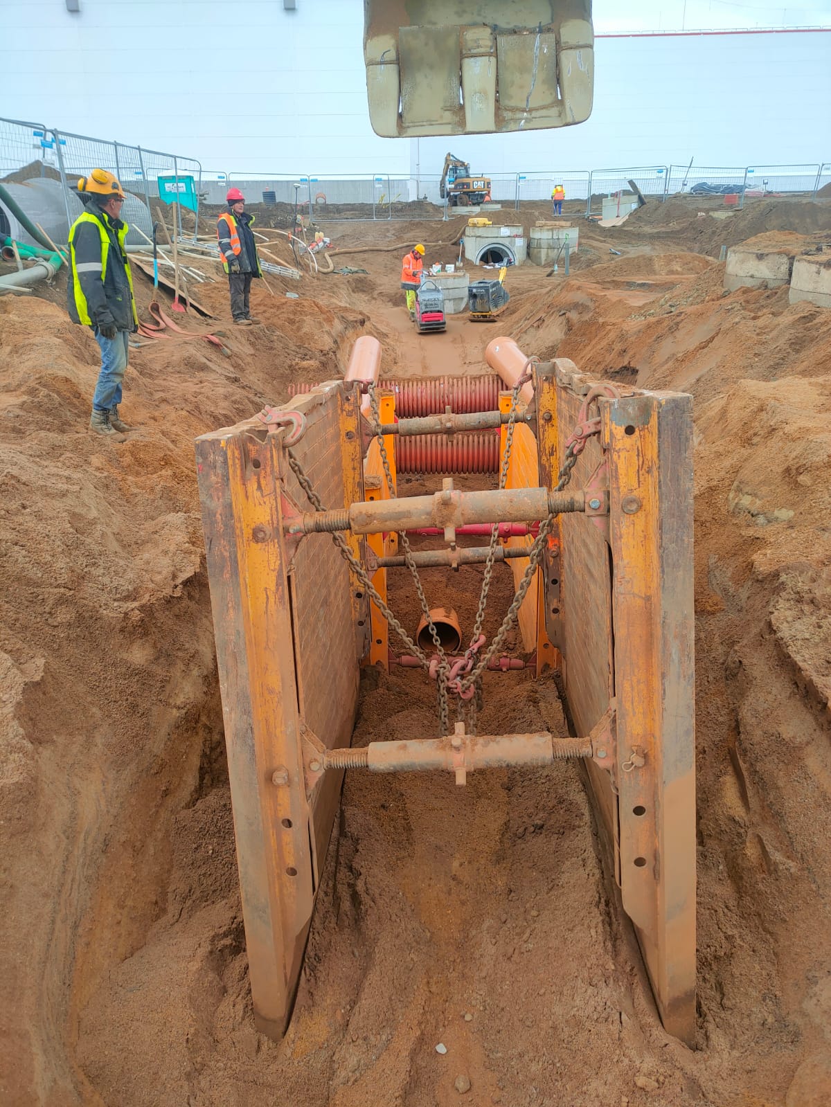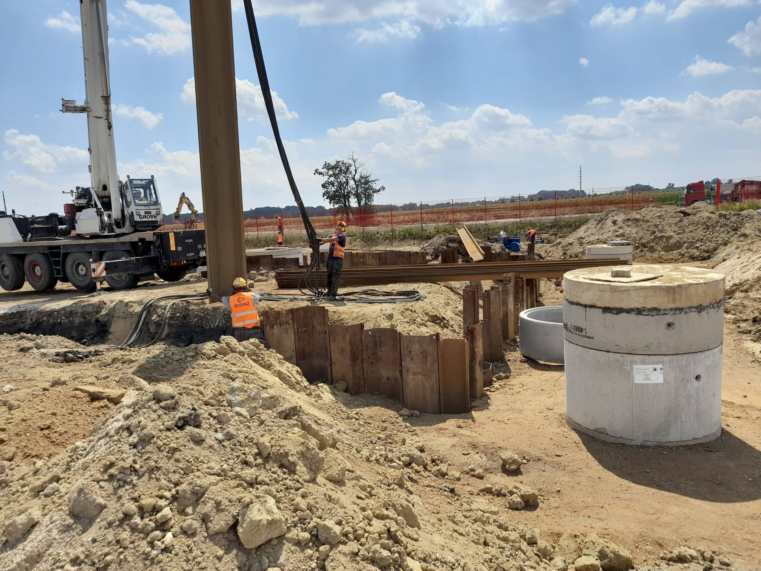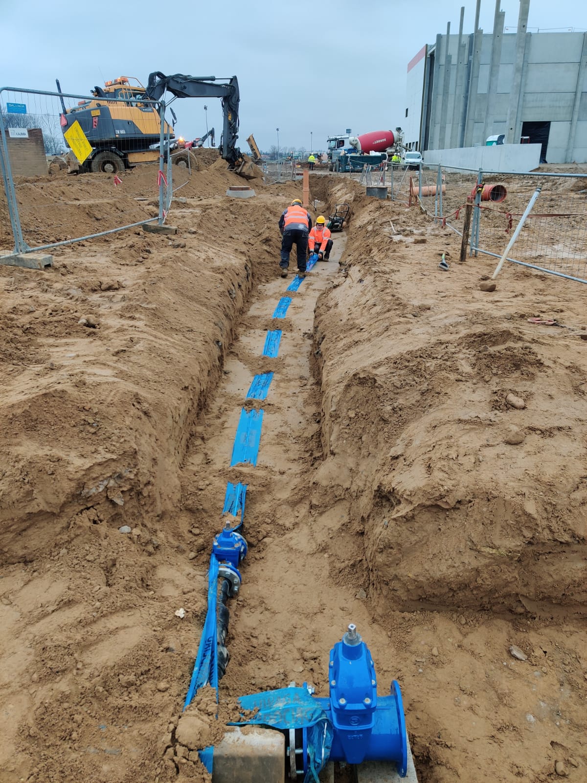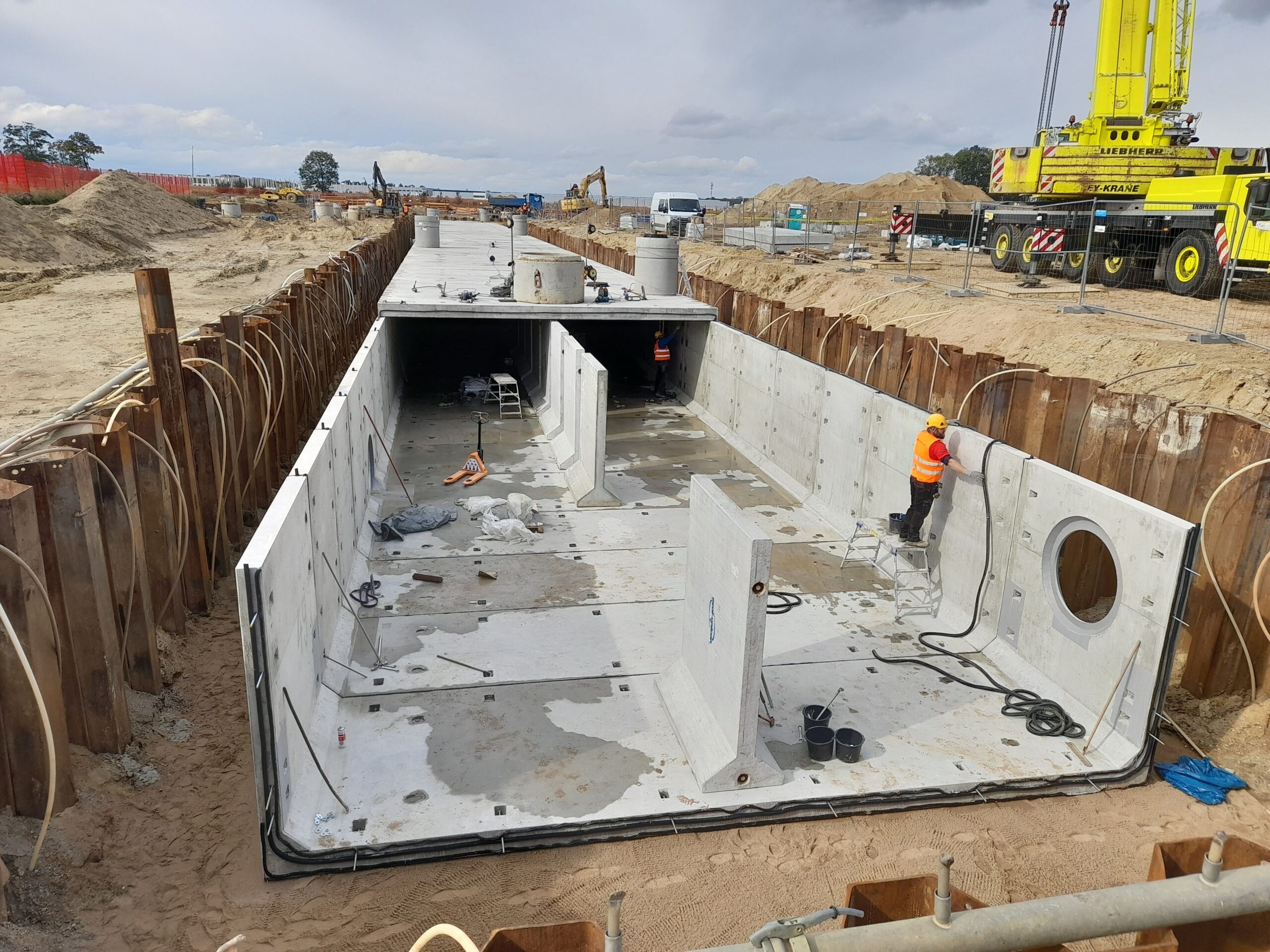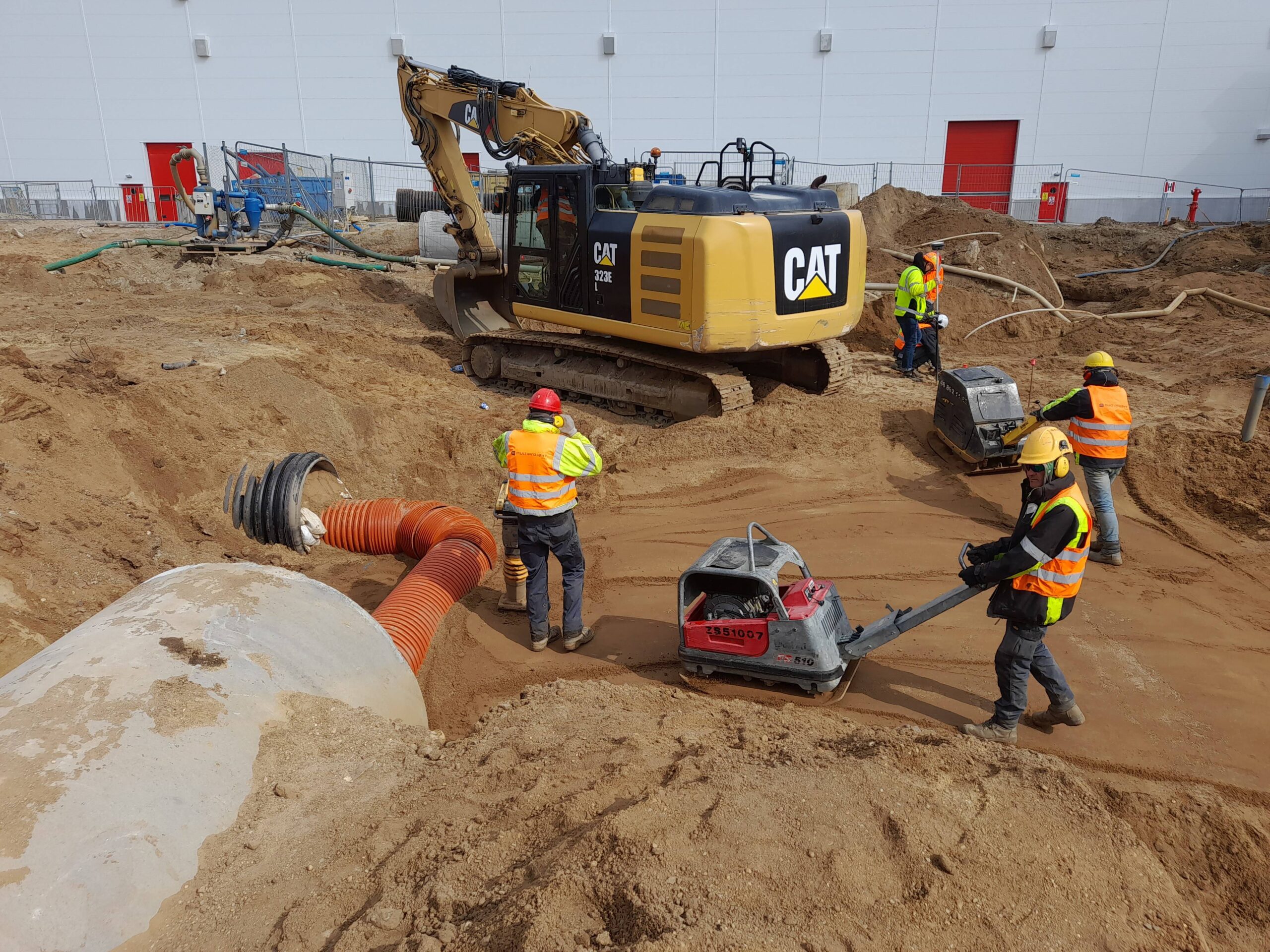 Projekty branżowe instalacyjne. Roboty ziemne: ~ 55 000m3 Kanalizacje deszczowe i sanitarne: ~ 7 500mb Podziemne zbiorniki retencyjne na wody opadowe: ~ 2 300m3 Instalacje wodociągowe: ~ 300mb Instalacje pożarowe: ~ 1 200mb Instalacje gazowe: ~ 600mb Sieci technologiczne: ~ 500mb Ścianki szczelne: ~ 5 000m2 Przewierty: ~ 800mb Przyłącza wodociągowe i sanitarne. Odwodnienie terenu. |